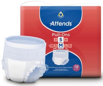 Attends imavad püksid Pull-Ons on keskmise ja raske pidamatuse korral kasutatavad imavad püksid. Attends imavaid pükse Pull-Ons on erinevates suurustes ja erineva imavusastmega.